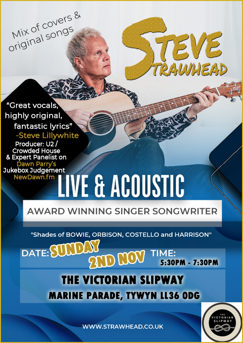 Excited to be playing at The Victorian Slipway, Tywyn. A lovely Welsh music venue on the coast. 2 sets mixing classic covers and original songs. Starting at 5.30PM-7:30PM